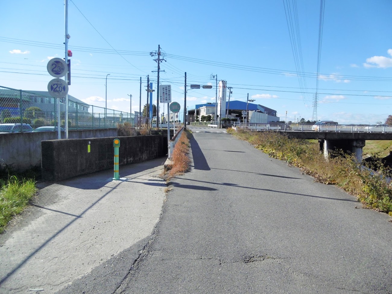 このあたりから強風がしんどくなってきました。風をさえぎる建物が少ない、川沿いの田園風景を望みながらのサイクリングロードは気持ちよかったけど、後から徐々にダメージに変わってきました。(景色はよかったんですけどね・・・)