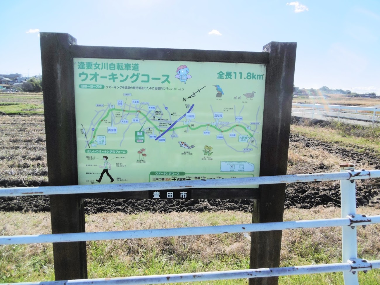 ウォーキングコース兼サイクリングロード。正式名称は逢妻女川自転車道なのかな?地図を見ると、逢妻女川を南下していくと途中から逢妻川になるみたいです。